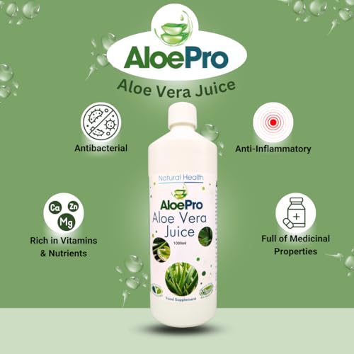 AloePro Aloe Vera Juice 1000ml – Pure Inner Leaf, High Strength, Vegan, Cruelty Free, Natural Digestive Support, Skin & Gut Health, Immune System Boost, Detox Cleanse, 1 Month Supply