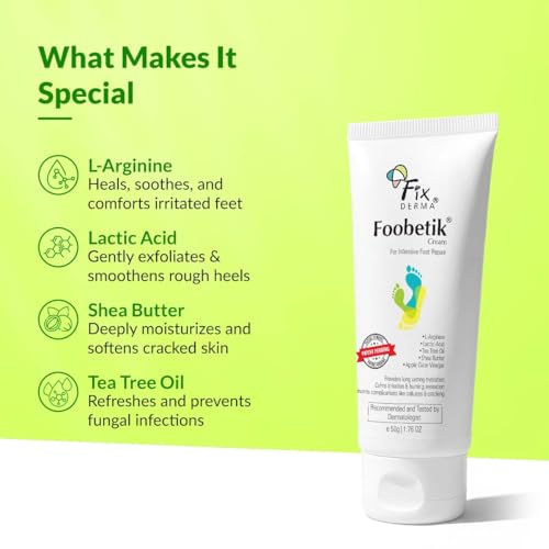 Fixderma Foobetik Cream with Lactic Acid | Foot Cream for Diabetic Feet | Foot Moisturiser | Foot Cream for Dry & Cracked Feet, Heel Repair | Paraben Free - 50gm
