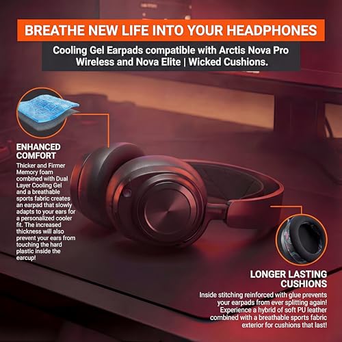 WC Freeze Nova Pro Wireless - Cooling Gel Earpads for Arctis Nova Pro Wireless & Nova Elite (Doesn’t Fit Other Models), by Wicked Cushions, Extra Thick & Comfortable | Black