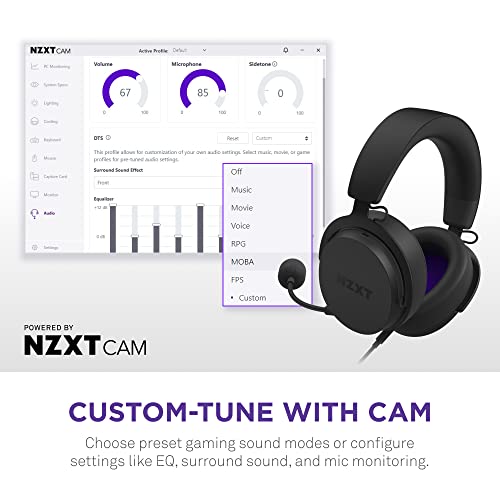 NZXT Relay Wired PC Gaming Headset - AP-WCB40-B2 - Hi-Res Audio Certified - DTS Headphone:X - 7.1 Surround Sound - Lightweight & Comfortable Design - Detachable Microphone - CAM Software - Black