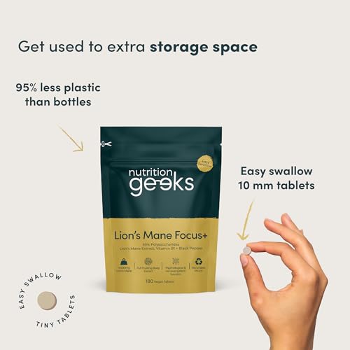 Nutrition Geeks Lions Mane Supplement 4000mg with Vitamin B1 & Black Pepper, 180 Vegan Tablets -