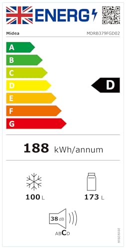 Midea MDRB379FGD02 273L 60/40 Freestanding Fridge Freezer, 173L Fridge, 100L Freezer, Frost Free, Fast Cool & Fast Freeze Mode, 54.7W x 63.2D x 180H cm, Stainless Steel