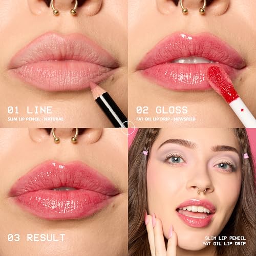 NYX Professional Makeup Lip Kit, Fat Oil Lip Drip Shade: Newsfeed, High-Shine Non-Sticky Lip Oil, 12-Hour Hydration & Protection + Slim Lip Pencil Shade: Natural, 100% Vegan & Cruelty-Free