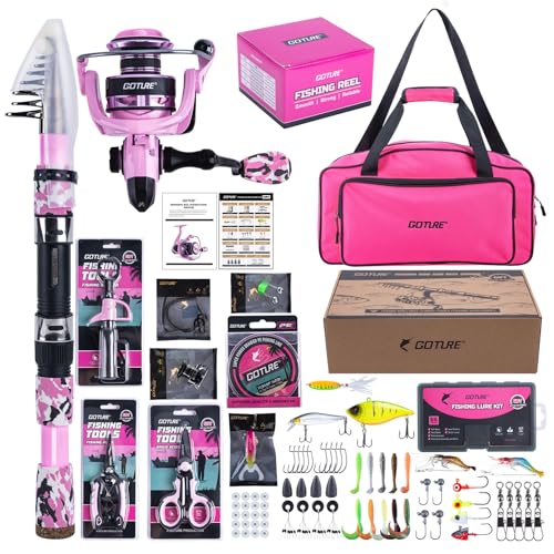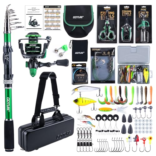 Goture Fishing Rod and Reel Combos with 900D Tackle Bag, Green Telescopic Pole B Spinning Reel Lures Set, Telescopic Fishing Rod Fishing Kit for Travel Saltwater Freshwater 2.7M