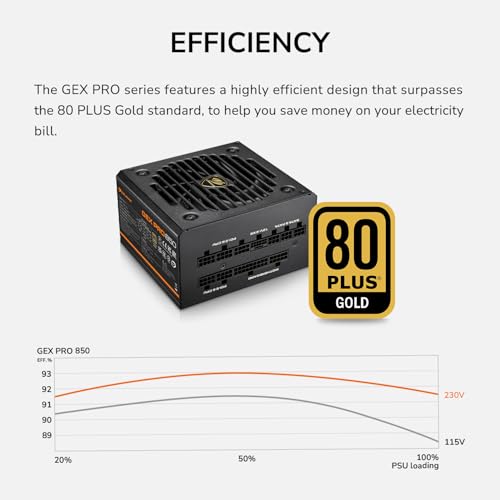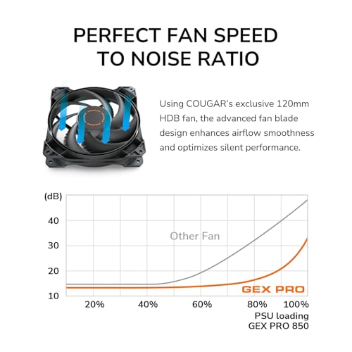 Cougar GEX PRO 750 Fully Modular Power Supply: PCI Express 5.1, 12+4 Pin Connector, 80 PLUS Gold Certified, Durable HDB Fan, Hydro Dynamic Bearing, ATX 3.1 Certified, Less Noise - Black