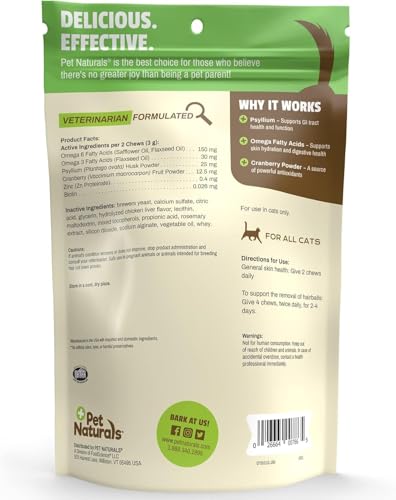 Pet Naturals Hairball for Cats with Omega 3, Chicken Flavor, 160 Chews - Can Help Eliminate Hairballs and Manage Excess Shedding - No Corn or Wheat