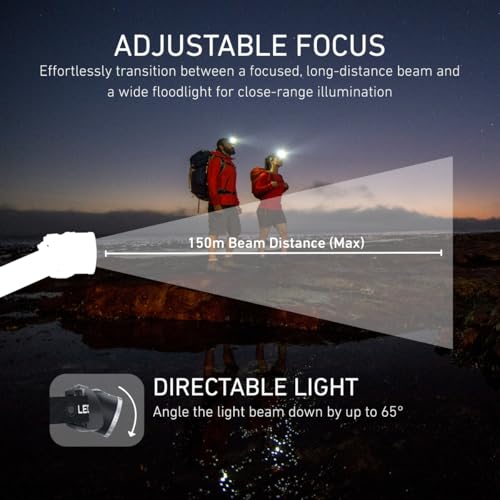 Ledlenser H8R Headlamp LED, Rechargeable Lithium 18650 Battery, 600 lumens, focusable, up to zu 120h runtime, red Rear Back Light, slewable, USB Charging Cable, Headlamp