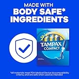 Tampax Compact Pearl Tampons, with LeakGuard Braid & Extendable Applicator, Regular Absorbency, Compact Extendable Applicator, Unscented, 16 Count (Packaging May Vary)