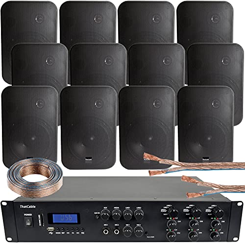 1200W Multi Zone Bluetooth Sound System | 6 Channel HiFi Matrix Amplifier Amp Kit | 12x 200W Black Wall Mount Speakers | Powerful Loud Wireless Music Streaming | Bar Restaurant Pub Club Audio | Alexa