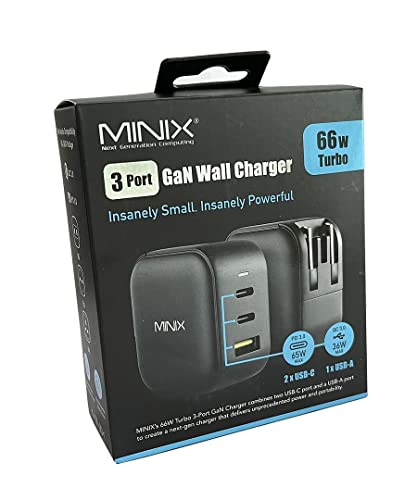 MINIX NEO P1 Wall Charger with 3 USB ports 2 x USB-C 3.0 (Maximum 65 W) 1 x USB-A Quick Charge 3.0 (Maximum 36 W), adapter included: EU, UK, US