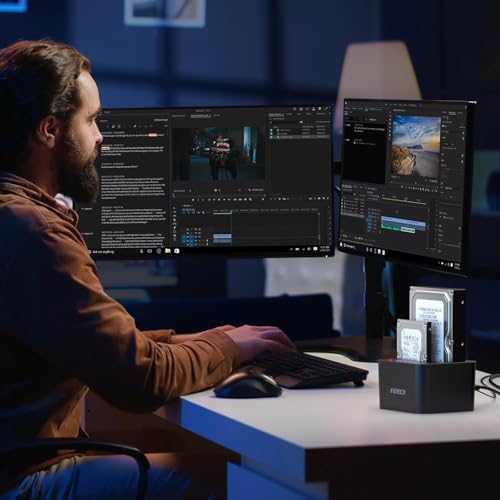 FIDECO Hard Drive Docking Station, USB 3.0 SATA HDD Docking Station for 2.5 and 3.5 inch SATA HDD SSD, Dual Bay, Support Offline Clone