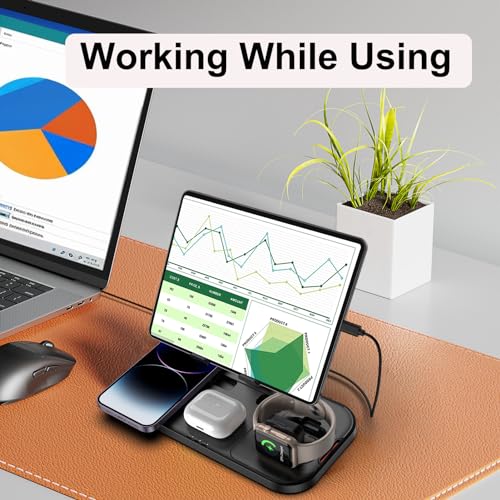 4 in 1 Wireless Charging Station for iPhone, Foldable Tablet Wireless...