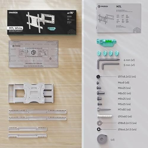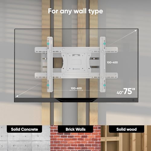 ONKRON Full Motion TV Wall Bracket for 40-75 Inch TVs, Universal Television Mount Weight up to 68 kg, Long Reach Television Wall Mount VESA 100x100-600x400, Tilt and Swivel TV Bracket White M7L-W