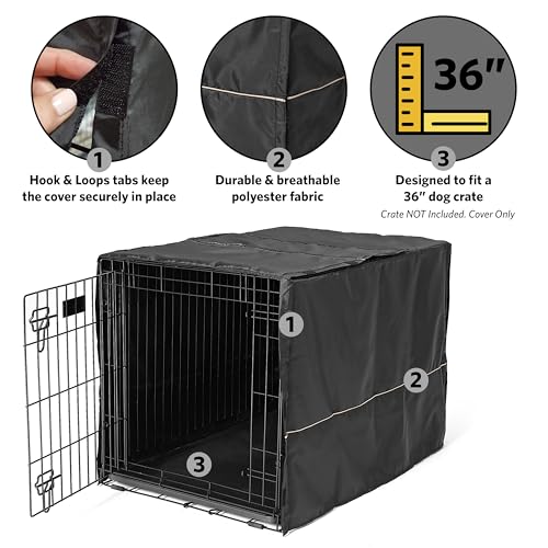 MidWest Homes for Pets Intermediate Dog Crate Cover, Black Polyester Privacy Kennel Cover Fits Most 91 cm Crates, Machine Washable, Reduces Barking & Chewing