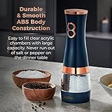 Tower Electric Salt and Pepper Mills, Battery Operated with Adjustable Ceramic Grinders, Midnight Blue and Rose Gold, T847004MNB