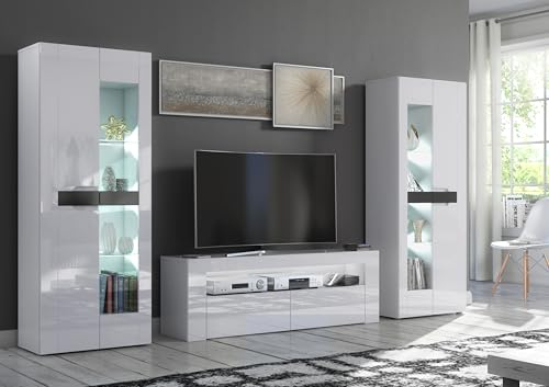 Furneo - High Gloss & Matt White Living Room Set tv Stand Display Cabinets MilClif13 White led Lights