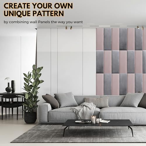 NOVECRAFTO Velvet Padded Wall Panels Set of 4 With Adhesive - H31.5 x W11.8 (80x30cm) Wall Mounted Headboards - Anti Collision 3D Pink Upholstered Headboards for Beds, Cladding Panels for Kids Room