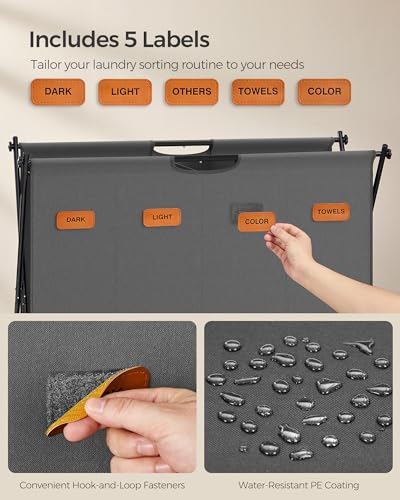 SONGMICS Laundry Hamper, Laundry Basket, 155 L Laundry Sorter 4 Sections, Collapsible X-Frame, Clothes Organiser with Customisable Labels, Laundry Room, Bedroom, Bathroom, Slate Grey LCB140G01