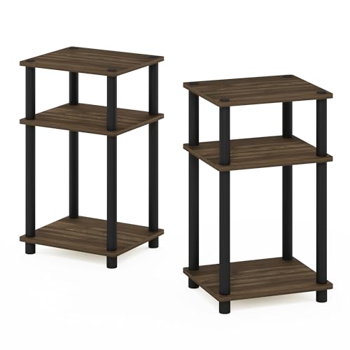 Furinno JUST Night Stand Set of 2, 3-Tier Turn-N-Tube Nightstand, Toolless Bedside Tables, End Table, Side Table with Open Storage for Bedroom, Living Room, Columbia Walnut