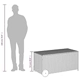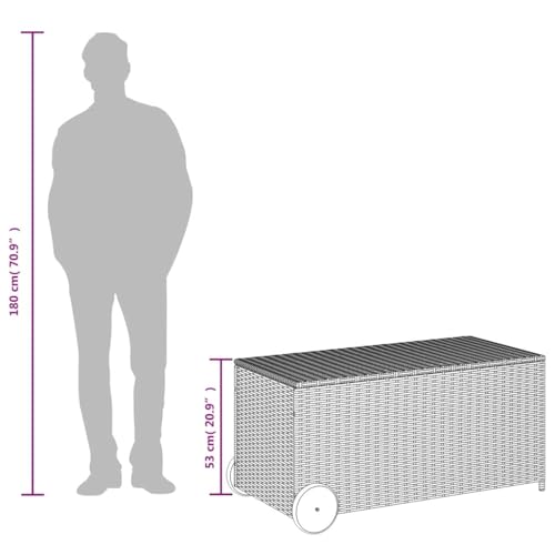 vidaXL 190L Poly Rattan Garden Storage Box Grey with Wheels - Outdoor Cushion Deck Storage Solution, Weather- with Gas Spring Lid