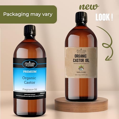 Essican Purelife Organic Cold Pressed Castor Oil for Hair Growth 1000ml, Pure Organic Castor Oil for Eyelashes, Skin Moisturiser, Eyebrow Oils Enhancement - Ideal for Body, Nails & Beard Cruelty-Free