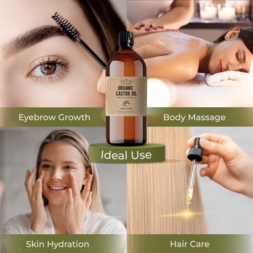 Essican Purelife Organic Castor Oil for Face - Caster Oil Organic Cold Pressed, 100% Pure Castor