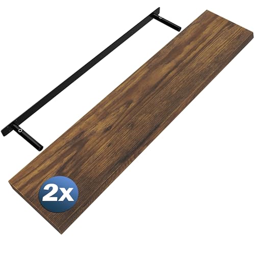 CASARIA® Set of 2 110cmx23cm Dark Oak Effect Floating Shelf Including Bracket | Wall Shelving Living Room Kitchen Bedroom Office | 38mm Thick | Hidden Wall Fixing | 15kg Capacity MDF
