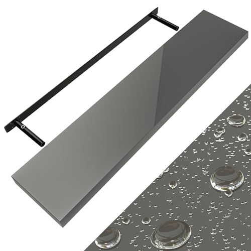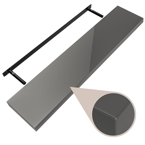 CASARIA® Set of 2 110cmx23cm High Gloss Grey Floating Shelf Including Bracket | Wall Shelving Living Room Kitchen Bedroom Office | 38mm Thick | Hidden Wall Fixing | 15kg Capacity MDF