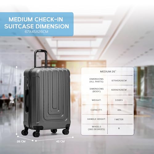 Flight Knight Medium 26 Hard Shell Check in Suitcase 8 Spinner Wheels Hold Luggage in Grey Grey Medium