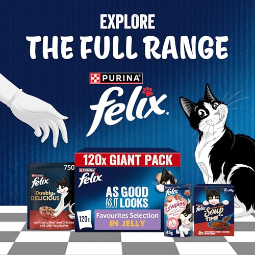 FELIX As Good As it Looks Adult Wet Cat Food Favourites Selection in Jelly Salmon, Tuna, Beef, Chicken 120 x 85g Pouches