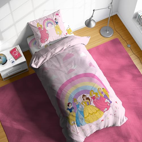 Jay Franco Disney Princess Rainbow 100% Cotton 3 piece Single Bedding Set - Includes Duvet Cover, Fitted Sheet & Pillowcase