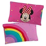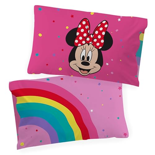 Jay Franco Disney Minnie Mouse Rainbow 100% Cotton 3 piece Single Bedding Set - Includes Duvet Cover, Fitted Sheet & Pillowcase