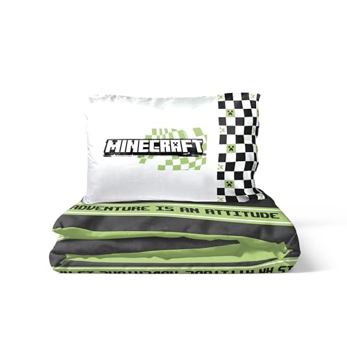 Jay Franco Minecraft Creeper Doodle 100% Cotton Single Duvet Cover Set - Bedding Includes 50 x 70 cm Pillowcase