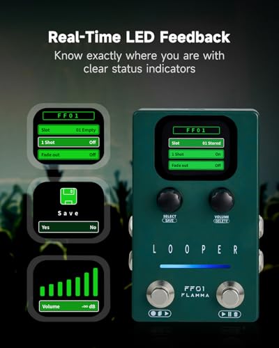 FLAMMA Looper Guitar FF01 Looper Pedal 40 160 Minutes of Loop Stereo Looper with Compatible with Electric USB Data Management Pedal, – Slots, Time,