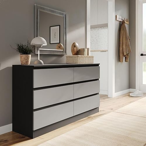 URBN Living (Black Carcass + Grey Drawers) 120cm Modern Wooden Chest of 6 Drawers Bedroom Fu