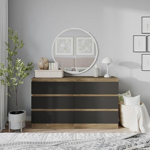URBN Living (Oak Carcass + Black Drawers) 120cm Modern Wooden Chest of 6 Drawers Bedroom Fur
