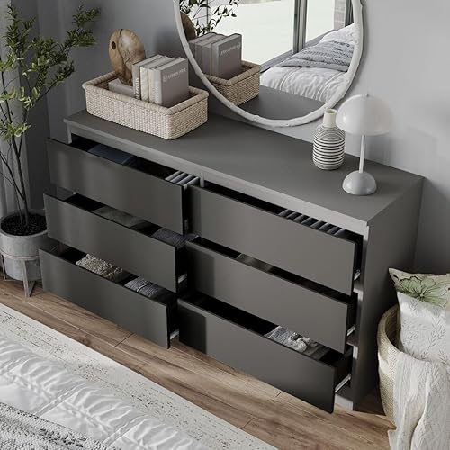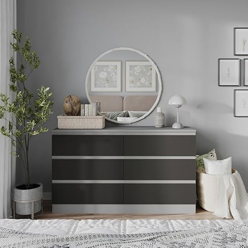 URBN Living (Grey Carcass + Black Drawers) 120cm Modern Wooden Chest of 6 Drawers Bedroom Fu