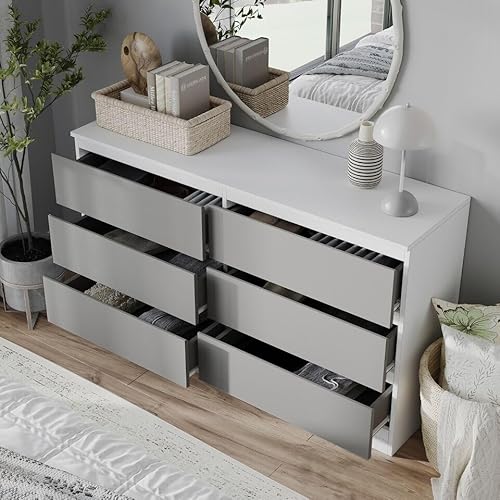 URBN Living (White Carcass + Grey Drawers) 120cm Modern Wooden Chest of 6 Drawers Bedroom Fu