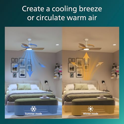 Philips Olas Ceiling Fan, 3 Blades, 24W LED Light, DC Motor, Color Temperature Range (3000K-4300K-6500K) with Dimmable Function, Remote Included, 42",white and wood
