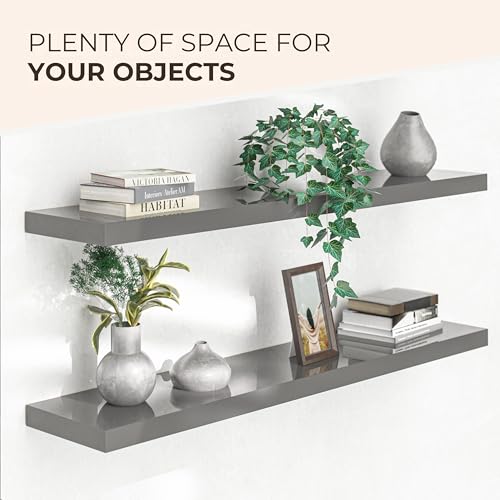 CASARIA® Floating Shelves 110cmx23cm Home and Kitchen Room Decor, Wall Shelving for Living Room, Bathroom 38mm MDF with Hidden Wall Fixing, 15kg Floating Shelf Capacity | Set of 3 | Gloss Grey
