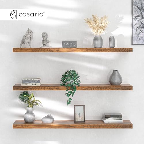 CASARIA® Set of 3 110cmx23cm Floating Shelf Including Bracket | Wall Shelving Living Room Kitchen Bedroom Office | 38mm Thick | Hidden Wall Fixing | 15kg Capacity MDF | Dark Oak Finish