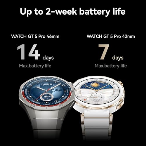 HUAWEI WATCH GT 5 Pro 42 mm Smartwatch, Sharp-Edged Design, Pro-level Sports Watch, Health Tracking, ECG monitoring, up to 14 Days Battery Life, GPS, Bluetooth call, iOS& Android, White Ceramic