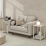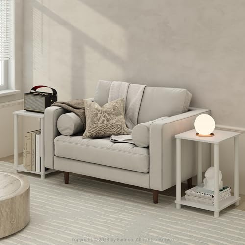 Furinno TURN-N-TUBE Side Table Set of 2, 2-Tier Stackable End Table with Open Shelf, Toolless Night Stand, Bedside Table, for Living Room, Bedroom, White