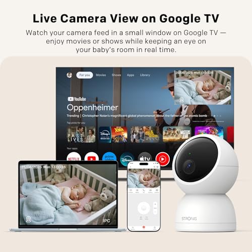 Strong Indoor Camera 2.5K 4MP, Baby Camera 360° Pan/Tilt, Dog Camera with Motion Detection, Auto Tracking, Super Dark Night Vision, 2-Way Audio, Cloud & 512GB SD Storage, 2.4G/5G WiFi, Home Security