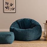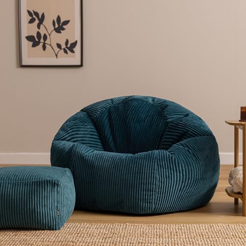 icon Kingston Cord Large Bean Bag and Footstool, Teal, XXL Adult Bean Bag Chair with Filling Included, Comfy Chair, Pouffe Footstool, Living Room Furniture, Bedroom Furniture