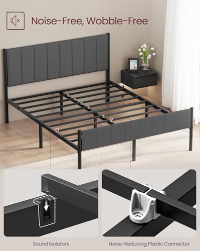 VASAGLE King Bed Frame, 150 x 190 cm, with Upholstered Headboard, Metal Bed Frame, 500 kg Weight Capacity, Easy Assembly, Slate Grey RMB977GN01