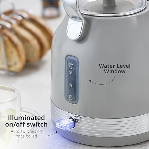 Swan SK14631GRY Retro Traditional Kettle, Rapid Boil, Removable Limescale Filter, Easy Pour, 360 Degree Base, Water Indicator Window and Boil Dry Protection 1.7L, 3KW, Grey and Stainless Steel