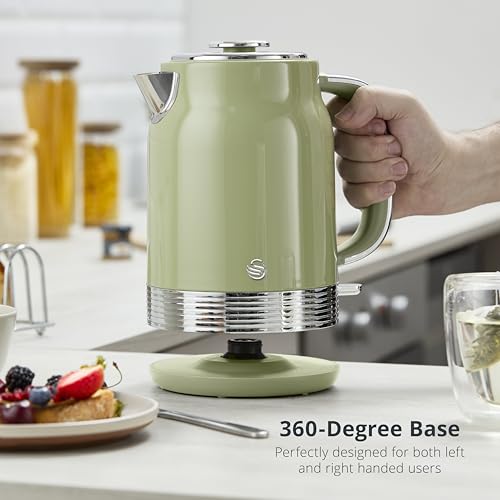 Swan SK19025GRN Retro Jug Kettle, Rapid Boil, Removable Limescale Filter, Easy Pour, 360 Degree Base, Water Indicator Window and Boil Dry Protection 1.7L, 3KW, Green and Stainless Steel
