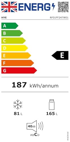 HYE Fridge Freezer - Medium Size 50/50 Freestanding Fridge Freezer 181cm Height, 54.5cm Width, 247 Litre Capacity, Total No Frost, Suitable For Apartments & Families, White - RF01FF247W01