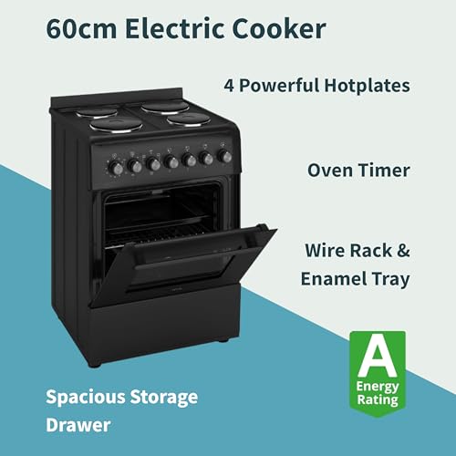 HYE Electric Cooker 60cm Single Oven, Hot Plate Freestanding - Black C01FS60E17